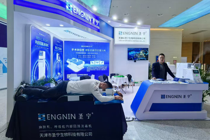 天津市圣宁生物科技有限公司携麻醉机、呼吸机内部回路消毒机畅销机型以特装展位形式亮相此次盛会。会议期间我司市场部和销售人员在展台接待各位莅临展位的老师,了解其对麻醉机和呼吸机消毒关心的重点问题,对使用方法、消毒时间和消毒原理等问题一一作答。